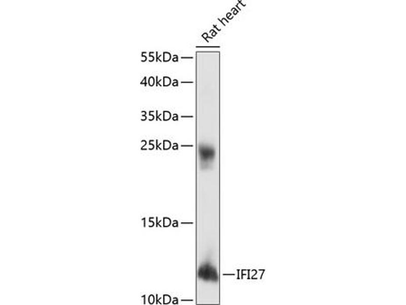 Probable adapter protein involved in different biological processes. Part of the signaling pathways that lead to apoptosis. Involved in type-I interferon-induced apoptosis characterized by a rapid and robust release of cytochrome C from the mitochondria and activation of BAX and caspases 2, 3, 6, 8 and 9. Also functions in TNFSF10-induced apoptosis. May also have a function in the nucleus, where it may be involved in the interferon-induced negative regulation of the transcriptional activity of NR4A1, NR4A2 and NR4A3 through the enhancement of XPO1-mediated nuclear export of these nuclear receptors. May thereby play a role in the vascular response to injury (By similarity. In the innate immune response, has an antiviral activity towards hepatitis C virus/HCV. May prevent the replication of the virus by recruiting both the hepatitis C virus non-structural protein 5A/NS5A and the ubiquitination machinery via SKP2, promoting the ubiquitin-mediated proteasomal degradation of NS5A.,IFI27,FAM14D,ISG12,ISG12A,P27,Immunology & Inflammation,Cell Intrinsic Innate Immunity Signaling Pathway,IFI27