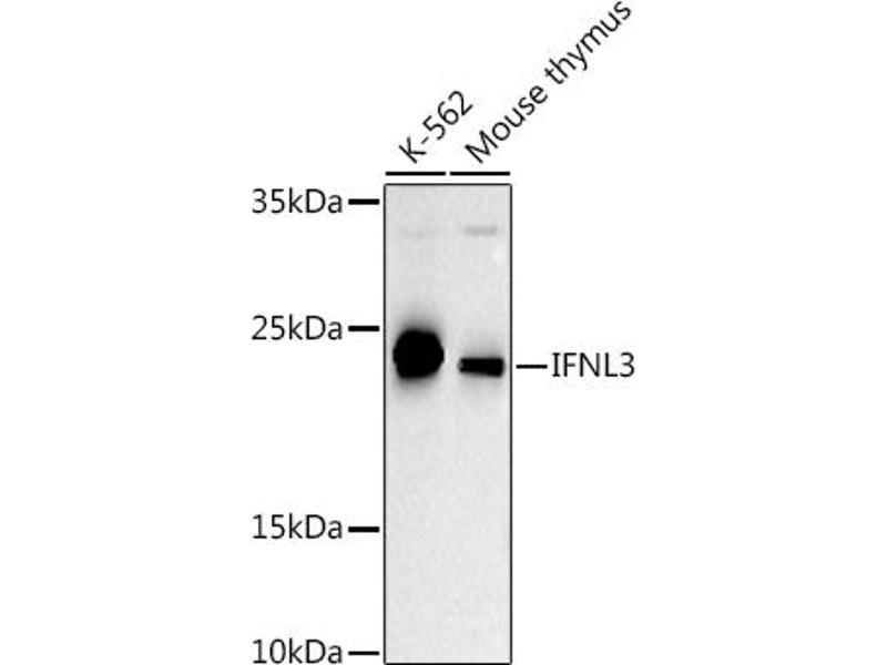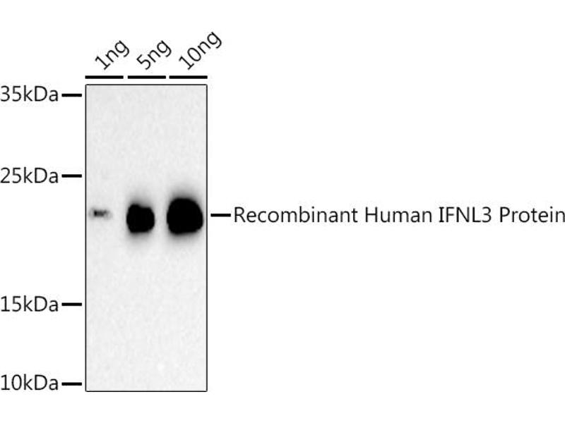 Der Kaninchen Polyklonal anti-IL28B Antikörper (ABIN6142207) detektiert spezifisch IL28B in WB.