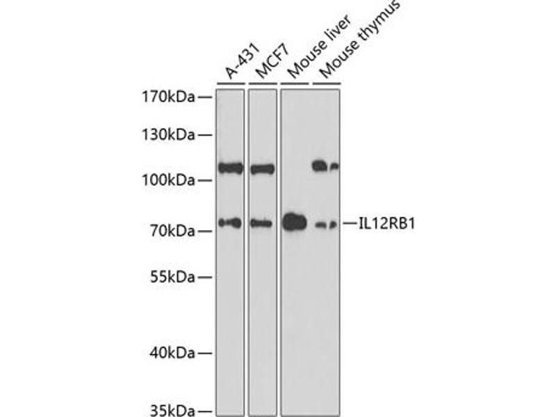 - The protein encoded by this gene is a type I transmembrane protein that belongs to the hemopoietin receptor superfamily. This protein binds to interleukine 12 (IL12) with a low affinity, and is thought to be a part of IL12 receptor complex. This protein forms a disulfide-linked oligomer, which is required for its IL12 binding activity. The coexpression of this and IL12RB2 proteins was shown to lead to the formation of high-affinity IL12 binding sites and reconstitution of IL12 dependent signaling. Mutations in this gene impair the development of interleukin-17-producing T lymphocytes and result in increased susceptibility to mycobacterial and Salmonella infections. Alternative splicing results in multiple transcript variants.,IL12RB1,CD212,IL-12R-BETA1,IL12RB,IMD30,Epigenetics & Nuclear Signaling,Immunology & Inflammation,CD markers,Cytokines,Interleukins,Cell Intrinsic Innate Immunity Signaling Pathway,IL12RB1