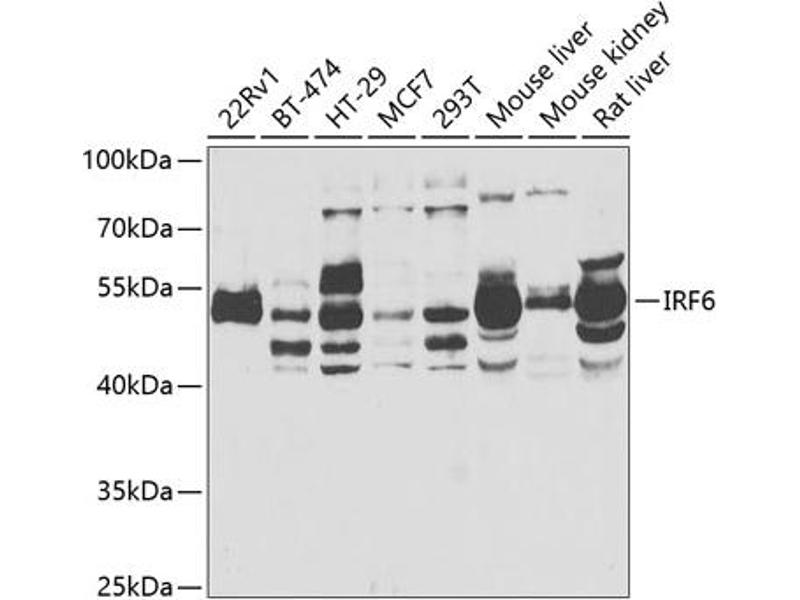 Dieses Kaninchen Polyklonal-Antikörper erkennt spezifisch IRF6 in WB. Er zeigt eine Reaktivität gegenüber Human.