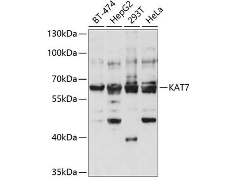 - Recombinant fusion protein containing a sequence corresponding to amino acids 55-193 of human KAT7 (NP_008998.1).