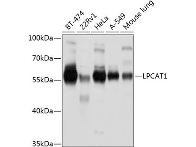 - This gene encodes a member of the 1-acyl-sn-glycerol-3-phosphate acyltransferase family of proteins. The encoded enzyme plays a role in phospholipid metabolism, specifically in the conversion of lysophosphatidylcholine to phosphatidylcholine in the presence of acyl-CoA. This process is important in the synthesis of lung surfactant and platelet-activating factor (PAF). Elevated expression of this gene may contribute to the progression of oral squamous cell, prostate, breast, and other human cancers. [provided by RefSeq, Sep 2016],LPCAT1,AGPAT10,AGPAT9,AYTL2,LPCAT-1,PFAAP3,lpcat,lysoPAFAT,Epigenetics & Nuclear Signaling,Chromatin Modifying Enzymes,other,LPCAT1