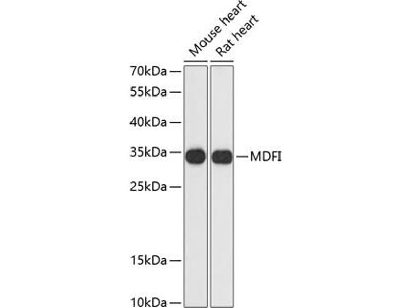 This protein is a transcription factor that negatively regulates other myogenic family proteins. Studies of the mouse homolog, I-mf, show that it interferes with myogenic factor function by masking nuclear localization signals and preventing DNA binding. Knockout mouse studies show defects in the formation of vertebrae and ribs that also involve cartilage formation in these structures.,MDFI,I-MF,I-mfa,Epigenetics & Nuclear Signaling,Cell Biology & Developmental Biology,MDFI