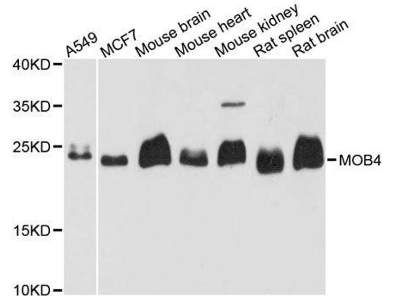 - Recombinant fusion protein containing a sequence corresponding to amino acids 1-225 of human MOB4 (NP_056202.2).