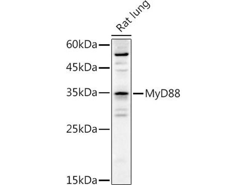 Der Kaninchen Polyklonal anti-MYD88 Antikörper wird verwendet zum Nachweis von MYD88 in Proben von Human. Er wurde validiert für WB und IHC.
