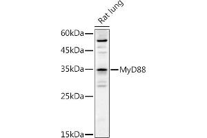 This gene encodes a cytosolic adapter protein that plays a central role in the innate and adaptive immune response. This protein functions as an essential signal transducer in the interleukin-1 and Toll-like receptor signaling pathways. These pathways regulate that activation of numerous proinflammatory genes. The encoded protein consists of an N-terminal death domain and a C-terminal Toll-interleukin1 receptor domain. Patients with defects in this gene have an increased susceptibility to pyogenic bacterial infections. Alternate splicing results in multiple transcript variants.,MYD88,MYD88D,myeloid differentiation primary response 88,MyD88,Signal Transduction,Immunology & Inflammation,NF-kB Signaling Pathway,Toll-like Receptor Signaling Pathway,Cell Intrinsic Innate Immunity Signaling Pathway,TLR Signaling,Cardiovascular,MYD88