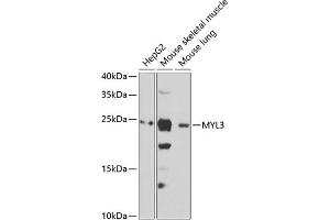 - MYL3 encodes myosin light chain 3, an alkali light chain also referred to in the literature as both the ventricular isoform and the slow skeletal muscle isoform. Mutations in MYL3 have been identified as a cause of mid-left ventricular chamber type hypertrophic cardiomyopathy.,MYL3,CMH8,MLC-lV/sb,MLC1SB,MLC1V,VLC1,VLCl,Signal Transduction,Cell Biology & Developmental Biology,Cytoskeleton,Motor Proteins,Actins,Cardiovascular,Heart,Contractility,MYL3