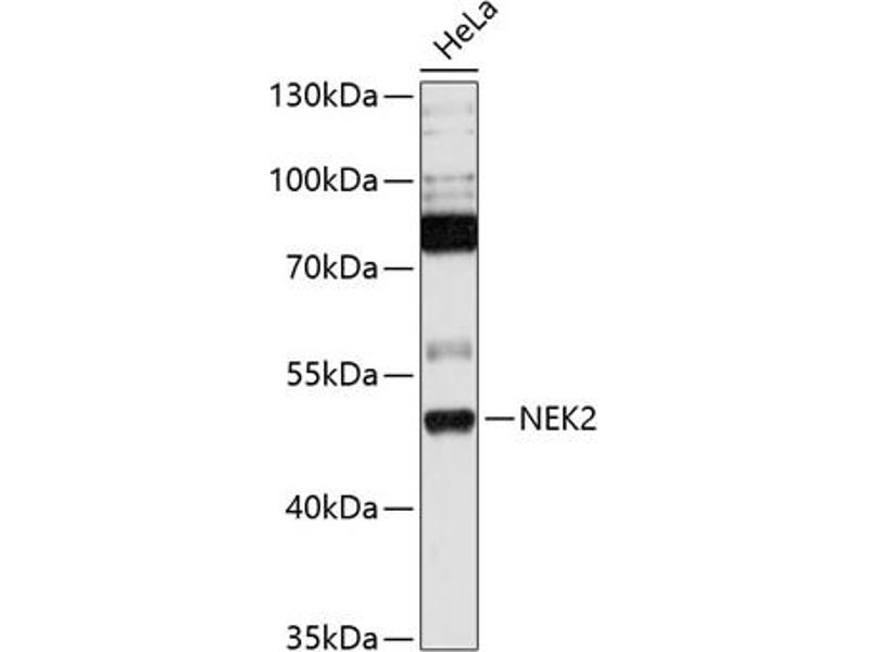 This gene encodes a serine/threonine-protein kinase that is involved in mitotic regulation. This protein is localized to the centrosome, and undetectable during G1 phase, but accumulates progressively throughout the S phase, reaching maximal levels in late G2 phase. Alternatively spliced transcript variants encoding different isoforms with distinct C-termini have been noted for this gene.,NEK2,HsPK21,NEK2A,NLK1,PPP1R111,RP67,Cancer,Signal Transduction,Kinase,Cell Biology & Developmental Biology,Cell Cycle,Centrosome,NEK2