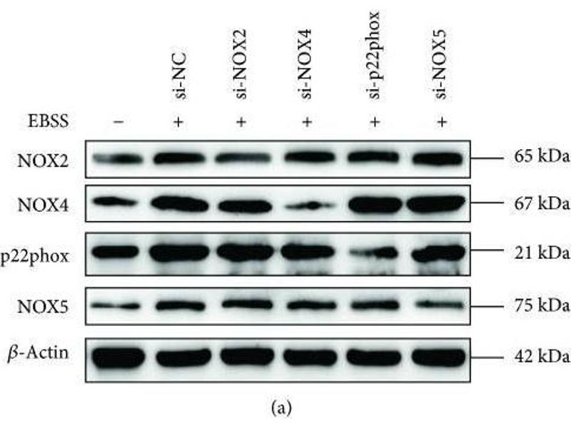 - This gene is predominantly expressed in the testis and lymphocyte-rich areas of spleen and lymph nodes. It encodes a calcium-dependen NADPH oxidase that generates superoxide, and functions as a calcium-dependent proton channel that may regulate redox-dependent processes in lymphocytes and spermatozoa. Alternatively spliced transcript variants encoding different isoforms have been described for this gene.,NOX5,Signal Transduction,Cell Biology & Developmental Biology,Apoptosis,Cell Cycle,Cell differentiation,Endocrine & Metabolism,NOX5