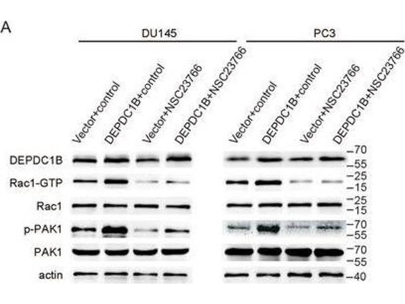 This gene encodes a family member of serine/threonine p21-activating kinases, known as PAK proteins. These proteins are critical effectors that link RhoGTPases to cytoskeleton reorganization and nuclear signaling, and they serve as targets for the small GTP binding proteins Cdc42 and Rac. This specific family member regulates cell motility and morphology. Alternatively spliced transcript variants encoding different isoforms have been found for this gene.,PAK1,PAKalpha,Epigenetics & Nuclear Signaling,Cancer,Signal Transduction,Kinase,Serine/threonine kinases,ErbB-HER Signaling Pathway,MAPK-Erk Signaling Pathway,Cell Biology & Developmental Biology,Apoptosis,Cytoskeleton,Microtubules,Actins,TGF-b-Smad Signaling Pathway,Immunology & Inflammation,PAK1