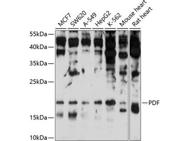 - Recombinant fusion protein containing a sequence corresponding to amino acids 40-243 of human PDF (NP_071736.1).