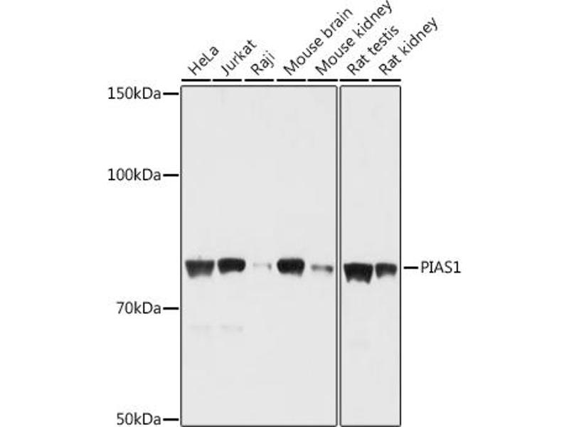 This gene encodes a member of the protein inhibitor of activated STAT (PIAS) family. PIAS proteins function as SUMO E3 ligases and play important roles in many cellular processes by mediating the sumoylation of target proteins. This protein plays a central role as a transcriptional coregulator of numerous cellular pathways includign the STAT1 and nuclear factor kappaB pathways. Alternate splicing results in multiple transcript variants.,PIAS1,DDXBP1,GBP,GU/RH-II,ZMIZ3,Epigenetics & Nuclear Signaling,Nuclear Receptor Signaling,Cell Biology & Developmental Biology,Ubiquitin,Ubiquitin-Proteasome Signaling Pathway,Immunology & Inflammation,IL-6 Receptor Signaling Pathway,PIAS1
