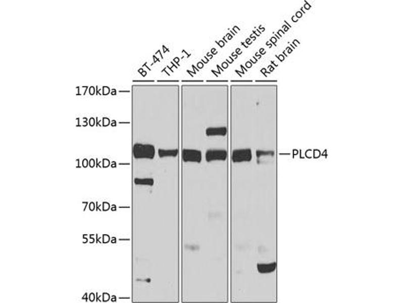 This gene encodes a member of the delta class of phospholipase C enzymes. Phospholipase C enzymes play a critical role in many cellular processes by hydrolyzing phosphatidylinositol 4,5-bisphosphate into two intracellular second messengers, inositol 1,4,5-trisphosphate and diacylglycerol. Expression of this gene may be a marker for cancer.,PLCD4,Signal Transduction,Endocrine & Metabolism,Lipid Metabolism,PLCD4
