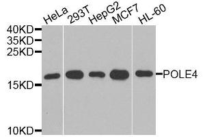 - POLE4 is a histone-fold protein that interacts with other histone-fold proteins to bind DNA in a sequence-independent manner. These histone-fold protein dimers combine within larger enzymatic complexes for DNA transcription, replication, and packaging.[supplied by OMIM, Apr 2004],POLE4,YHHQ1,p12,POLE4