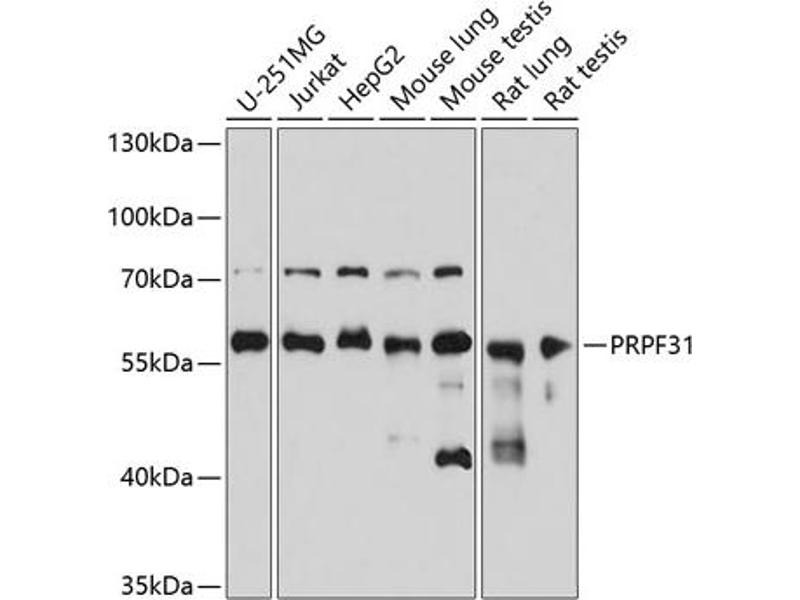 Der Kaninchen Polyklonal anti-PRPF31 Antikörper (ABIN6146262) detektiert spezifisch PRPF31 in WB und IHC.
