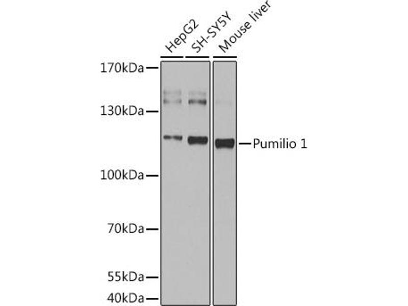 This gene encodes a member of the PUF family, evolutionarily conserved RNA-binding proteins related to the Pumilio proteins of Drosophila and the fem-3 mRNA binding factor proteins of C. elegans. The encoded protein contains a sequence-specific RNA binding domain comprised of eight repeats and N- and C-terminal flanking regions, and serves as a translational regulator of specific mRNAs by binding to their 3' untranslated regions. The evolutionarily conserved function of the encoded protein in invertebrates and lower vertebrates suggests that the human protein may be involved in translational regulation of embryogenesis, and cell development and differentiation. Alternatively spliced transcript variants encoding different isoforms have been described.,PUM1,HSPUM,PUMH,PUMH1,PUML1,Epigenetics & Nuclear Signaling,RNA Binding,Cell Biology & Developmental Biology,Stem Cells,Germline Stem Cells,pum1