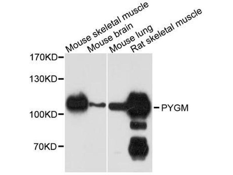 - A synthetic peptide corresponding to a sequence within amino acids 700 to the C-terminus of human PYGM (NP_005600.1).