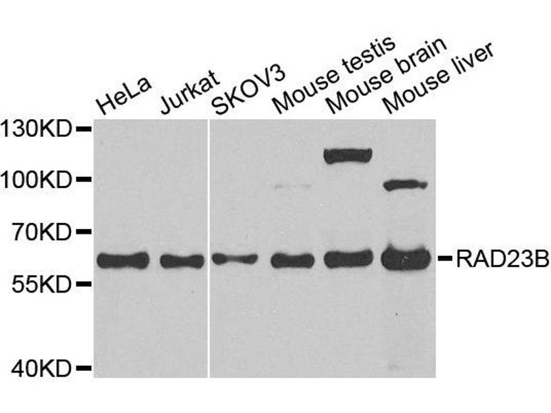 - A synthetic peptide corresponding to a sequence within amino acids 50-150 of human Rad23B (NP_002865.1).