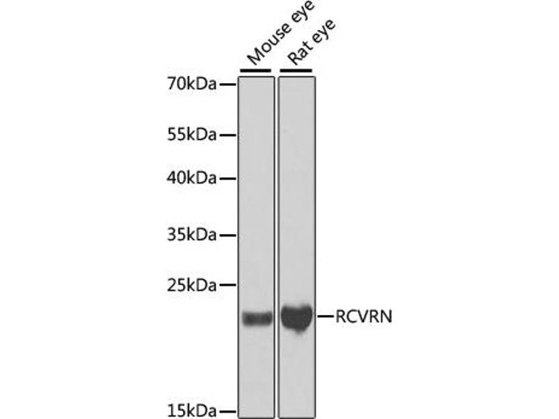 This gene encodes a member of the recoverin family of neuronal calcium sensors. The encoded protein contains three calcium-binding EF-hand domains and may prolong the termination of the phototransduction cascade in the retina by blocking the phosphorylation of photo-activated rhodopsin. Recoverin may be the antigen responsible for cancer-associated retinopathy.,RCVRN,RCV1,recoverin,Signal Transduction,Neuroscience,Calcium Signaling,RCVRN