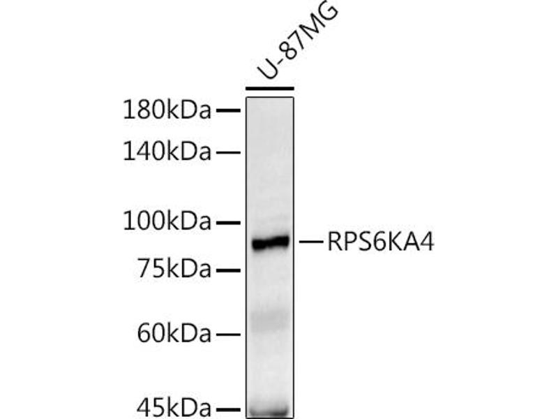 This gene encodes a member of the RSK (ribosomal S6 kinase) family of serine/threonine kinases. This kinase contains 2 non-identical kinase catalytic domains and phosphorylates various substrates, including CREB1 and ATF1. The encoded protein can also phosphorylate histone H3 to regulate certain inflammatory genes. Several transcript variants encoding different isoforms have been found for this gene.,RPS6KA4,MSK2,RSK-B,S6K-alpha-4,Epigenetics & Nuclear Signaling,Chromatin Modifying Enzymes,Phosphorylation,Signal Transduction,G protein signaling,G2/M DNA Damage Checkpoint,Kinase,Serine/threonine kinases,MAPK-Erk Signaling Pathway,MAPK-P38 Signaling Pathway,Cell Biology & Developmental Biology,Apoptosis,Mitochondrial Control of Apoptosis,Inhibition of Apoptosis,Immunology & Inflammation,RPS6KA4