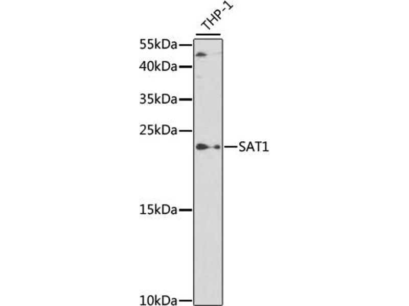 The protein encoded by this gene belongs to the acetyltransferase family, and is a rate-limiting enzyme in the catabolic pathway of polyamine metabolism. It catalyzes the acetylation of spermidine and spermine, and is involved in the regulation of the intracellular concentration of polyamines and their transport out of cells. Defects in this gene are associated with keratosis follicularis spinulosa decalvans (KFSD). Alternatively spliced transcripts have been found for this gene.,DC21,KFSD,KFSDX,SAT,SSAT,SSAT-1,SAT1,Epigenetics & Nuclear Signaling,Cell Biology & Developmental Biology,SAT1