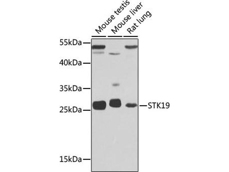 This gene encodes a serine/threonine kinase which localizes predominantly to the nucleus. Its specific function is unknown, it is possible that phosphorylation of this protein is involved in transcriptional regulation. This gene localizes to the major histocompatibility complex (MHC) class III region on chromosome 6 and expresses two transcript variants.,STK19,D6S60,D6S60E,G11,HLA-RP1,RP1,Signal Transduction,Kinase,STK19