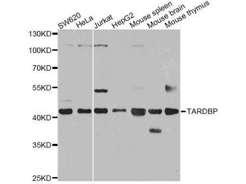 Der Kaninchen Polyklonal anti-TARDBP Antikörper (ABIN6148854) detektiert spezifisch TARDBP in WB, IHC und IF.