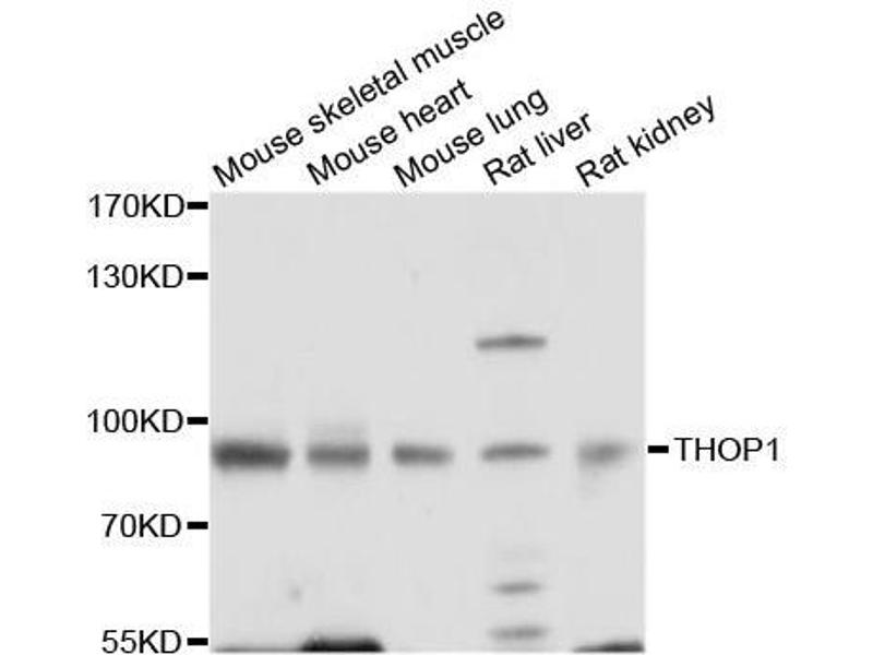 - Recombinant fusion protein containing a sequence corresponding to amino acids 1-260 of human THOP1 (NP_003240.1).