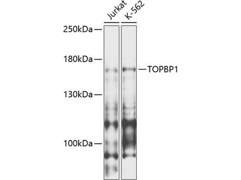 This gene encodes a binding protein which interacts with the C-terminal region of topoisomerase II beta. This interaction suggests a supportive role for this protein in the catalytic reactions of topoisomerase II beta through transient breakages of DNA strands.,TOPBP1,TOP2BP1,Epigenetics & Nuclear Signaling,DNA Damage & Repair,Cancer,Drug resistance,Topoisomerases,TOPBP1