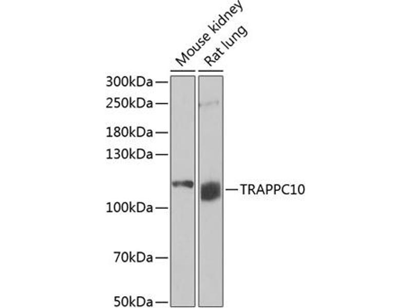 The protein encoded by this gene is a transmembrane protein found in the cis-Golgi complex. The encoded protein is part of the multisubunit transport protein particle (TRAPP) complex and may be involved in vesicular transport from the endoplasmic reticulum to the Golgi. Mutations in this gene could be responsible for the Unverricht-Lundborg type of progressive myoclonus epilepsy, or for autoimmune polyglandular disease type 1.,TRAPPC10,EHOC-1,EHOC1,GT334,TMEM1,TRS130,TRS30,Signal Transduction,TRAPPC10