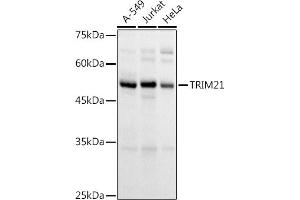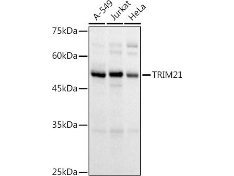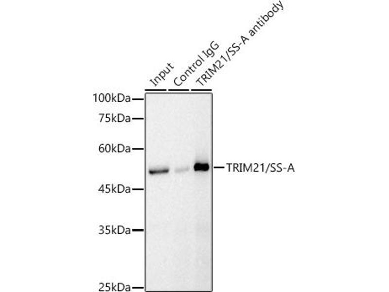 This gene encodes a member of the tripartite motif (TRIM) family. The TRIM motif includes three zinc-binding domains, a RING, a B-box type 1 and a B-box type 2, and a coiled-coil region. The encoded protein is part of the RoSSA ribonucleoprotein, which includes a single polypeptide and one of four small RNA molecules. The RoSSA particle localizes to both the cytoplasm and the nucleus. RoSSA interacts with autoantigens in patients with Sjogren syndrome and systemic lupus erythematosus. Alternatively spliced transcript variants for this gene have been described but the full-length nature of only one has been determined.,TRIM21,RNF81,RO52,Ro/SSA,SSA,SSA1,Epigenetics & Nuclear Signaling,Immunology & Inflammation,TRIM21