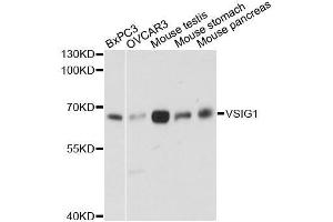 This gene encodes a member of the junctional adhesion molecule (JAM) family. The encoded protein contains multiple glycosylation sites at the N-terminal region, and multiple phosphorylation sites and glutamic acid/proline (EP) repeats at the C-terminal region. The gene is expressed in normal stomach and testis, as well as in gastric, esophageal and ovarian cancers. Alternatively spliced transcript variants encoding different isoforms have been found for this gene.,VSIG1,1700062D20Rik,GPA34,dJ889N15.1,Immunology & Inflammation,VSIG1