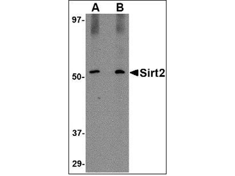 The founding member of the sirtuin protein family was the silent information regulator 2 protein (Sir2p) of Saccharomyces cervisiae, an NAD+-dependent histone deacetylase (HDAC) that regulates chromatin silencing. The SIR2 family of genes are highly conserved from prokaryotes to eukaryotes. Mammals have seven homologs of Sir2p, SIRT1-7, which are involved in diverse processes ranging from transcriptional regulation, cell cycle progression and DNA-damage repair to aging. SIRT2 is a predominantly cytoplasmic protein that colocalizes with microtubules and can deacetylate ?-tubulin and regulate progression through the cell cycle. Most Sirtuins are highly expressed in brain and testis, while Sirt2 expression is higher in fetal relative to adult brain. Recent studies on SIRT2 support the therapeutic utility of inhibitors for the treatment of neurodegenerative diseases such as Parkinson's disease.Synonyms: NAD-dependent deacetylase sirtuin-2, SIR2-like protein 2, SIR2L, SIR2L2, SIRT-2, sirtuin (silent mating type information regulation 2 homolog) 2 (S. cerevisiae), sirtuin 2, sirtuin type 2, sirtuin-2