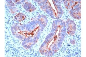 - This antibody recognizes proteins of 80-200 kDa, identified as different members of CEA family. CEA is synthesized during development in the fetal gut and is re-expressed in increased amounts in intestinal carcinomas and several other tumors. This MAb reacts with nonspecific cross-reacting antigen (NCA) and shows a cross-reaction with human polymorphonuclear leucocytes. It shows no reaction with a variety of normal tissues and is suitable for staining of formalin/paraffin tissues. CEA is not found in benign glands, stroma, or malignant prostatic cells. Antibody to CEA is useful in detecting early foci of gastric carcinoma and in distinguishing pulmonary adenocarcinomas (60-70 % are CEA ) from pleural mesotheliomas (rarely or weakly CEA ). Anti-CEA positivity is seen in adenocarcinomas from the lung, colon, stomach, esophagus, pancreas, gallbadder, urachus, salivary gland, ovary, and endocervix. Primary antibodies are available purified, or with a selection of fluorescent CF® dyes and other labels. CF® dyes offer exceptional brightness and photostability. Note: Conjugates of blue fluorescent dyes like CF®405S and CF®405M are not recommended for detecting low abundance targets, because blue dyes have lower fluorescence and can give higher non-specific background than other dye colors.