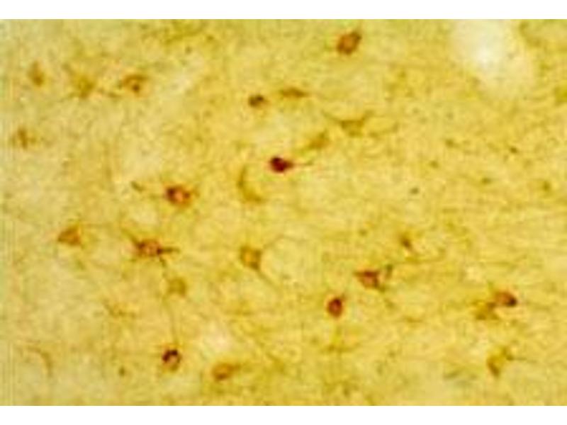 The 5-HT 2A Receptor Antibody was raised against a multiple antigenic peptide of an N-terminal synthetic sequence corresponding to amino acids 22-41 of rat 5HT2A receptor. The antibody is provided as 100 μLof affinity purified serum in PBS (0.02 M sodium phosphate with 0.15 M sodium chloride, pH 7.5) with 1 % BSA (bovine serum albumin), and 0.02 % sodium azide. The antiserum demonstrates strongly positive labeling of rat cortex, amygdala and hippocampus using indirect immunofluorescent and biotin/avidin-HRP techniques. Recommended primary dilutions are 1/300 - 1/500 in PBS/0.03 % Triton X-100 - Bn/Av-HRP Technique. The addition of intensifying reagents such as nickel ammonium sulfate to the chromogen solution will approximately double the dilution factor as recommended. Immunolabeling is completely abolished by preadsorption with synthetic rat 5HT2A receptor (22-41). Immunolabeling of Western blot revealed a single band of approximately 53kD.