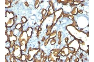 - This MAb recognizes a single chain, transmembrane, heavily glycosylated protein of 90-120 kDa, which is identified as CD34. Its expression is a hallmark for identifying pluripotent hematopoietic stem or progenitor cells. Its expression is gradually lost as lineage committed progenitors differentiate. CD34 is a marker of choice for staining blasts in acute myeloid leukemia. In addition, CD34 is expressed by soft tissue tumors, such as solitary fibrous tumor and gastrointestinal stromal tumor. Its expression is also found in vascular endothelium. Additionally, it appears that proliferating endothelial cells express this molecule more than the non-proliferating endothelial cells. Anti-CD34 labels > 85 % of angiosarcoma and Kaposi s sarcoma, but with a lower specificity. Primary antibodies are available purified, or with a selection of fluorescent CF® dyes and other labels. CF® dyes offer exceptional brightness and photostability. Note: Conjugates of blue fluorescent dyes like CF®405S and CF®405M are not recommended for detecting low abundance targets, because blue dyes have lower fluorescence and can give higher non-specific background than other dye colors.