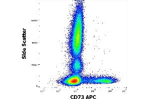 5'-nucleotidase ecto,CD73 (ecto-5´-nucleotidase) is a 70 kDa glycoprotein anchored to the extracellular leaflet of the plasma membrane by GPI. This ecto-enzyme catalyzes dephosphorylation of AMP to adenosine. CD73 is expressed in various types of cells, such as epithelial, muscle, and endothelial cells, neutrophils, lymphocytes and fibroblasts. Inflammatory mediators support CD73 expression and its enzymatic activity, leading to the release of adenosine, which modulates inflammation through adenosine receptors. CD73 is expressed in a variety of lymphomas and leukemias, including ALL and CLL, whereas immunodeficient patients usually express low levels of this protein.,ecto-5´nucleotidase, NT5E, E5NT, CALJA, NTE