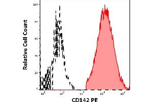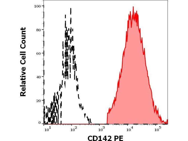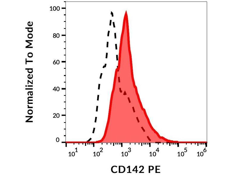 The mouse monoclonal antibody HTF-1, also known as HTF1-7B8, recognizes an extracellular epitope of CD142 (tissue factor, coagulation factor III), a type I glycoprotein expressed on endothelial cells, monocytes, macrophages, and platelets upon induction by inflammatory mediators, and expressed constitutively by some tumors, the vasculature, placenta, kidney, and central nervous system.