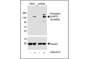 This Phospho-MYPT1 (Ser668) antibody is generated from a rabbit immunized with a KLH conjugated synthetic peptide between 641-674 amino acids from human MYPT1.
