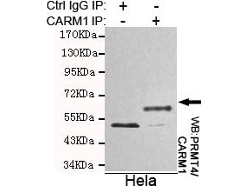 Methylates (mono- and asymmetric dimethylation) the guanidino nitrogens of arginyl residues in several proteins involved in DNA packaging, transcription regulation, pre-mRNA splicing, and mRNA stability. Recruited to promoters upon gene activation together with histone acetyltransferases from EP300/P300 and p160 families, methylates histone H3 at 'Arg-17' (H3R17me), forming mainly asymmetric dimethylarginine (H3R17me2a), leading to activate transcription via chromatin remodeling. During nuclear hormone receptor activation and TCF7L2/TCF4 activation, acts synergically with EP300/P300 and either one of the p160 histone acetyltransferases NCOA1/SRC1, NCOA2/GRIP1 and NCOA3/ACTR or CTNNB1/beta-catenin to activate transcription. During myogenic transcriptional activation, acts together with NCOA3/ACTR as a coactivator for MEF2C. During monocyte inflammatory stimulation, acts together with EP300/P300 as a coactivator for NF-kappa-B. Acts as coactivator for PPARG, promotes adipocyte differentiation and the accumulation of brown fat tissue. Plays a role in the regulation of pre-mRNA alternative splicing by methylation of splicing factors. Also seems to be involved in p53/TP53 transcriptional activation. Methylates EP300/P300, both at 'Arg- 2142', which may loosen its interaction with NCOA2/GRIP1, and at 'Arg-580' and 'Arg-604' in the KIX domain, which impairs its interaction with CREB and inhibits CREB-dependent transcriptional activation. Also methylates arginine residues in RNA-binding proteins PABPC1, ELAVL1 and ELAV4, which may affect their mRNA- stabilizing properties and the half-life of their target mRNAs.