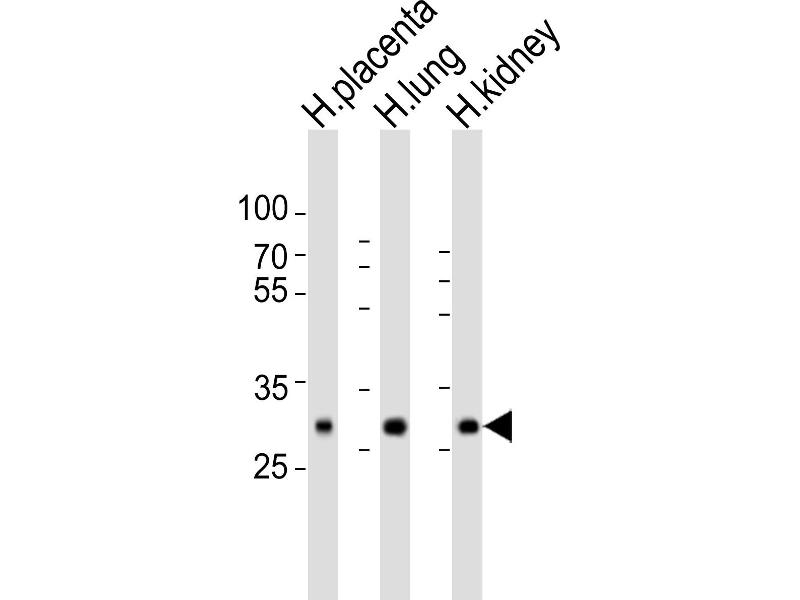 This SOD3 antibody is generated from a rabbit immunized with a KLH conjugated synthetic peptide between 186-219 amino acids from the C-terminal region of human SOD3.