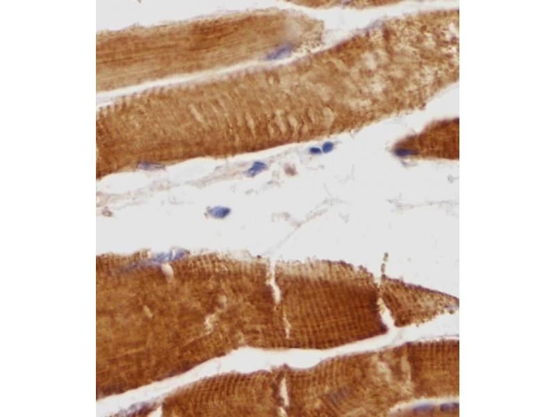 This TTN antibody is generated from a rabbit immunized with a KLH conjugated synthetic peptide between 7169-7203 amino acids from the N-terminal region of human TTN.