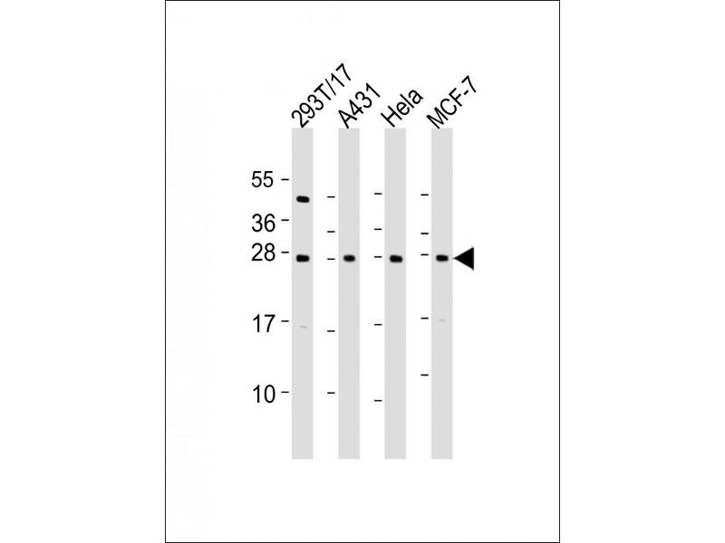 This RPL14 antibody is generated from a rabbit immunized with a KLH conjugated synthetic peptide between 173-204 amino acids from human RPL14.