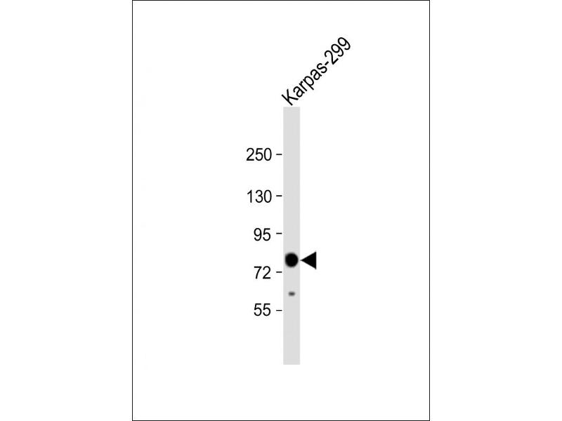 This ALK antibody is generated from a rabbit immunized with a KLH conjugated synthetic peptide between 1466-1500 amino acids from the C-terminal region of human ALK.