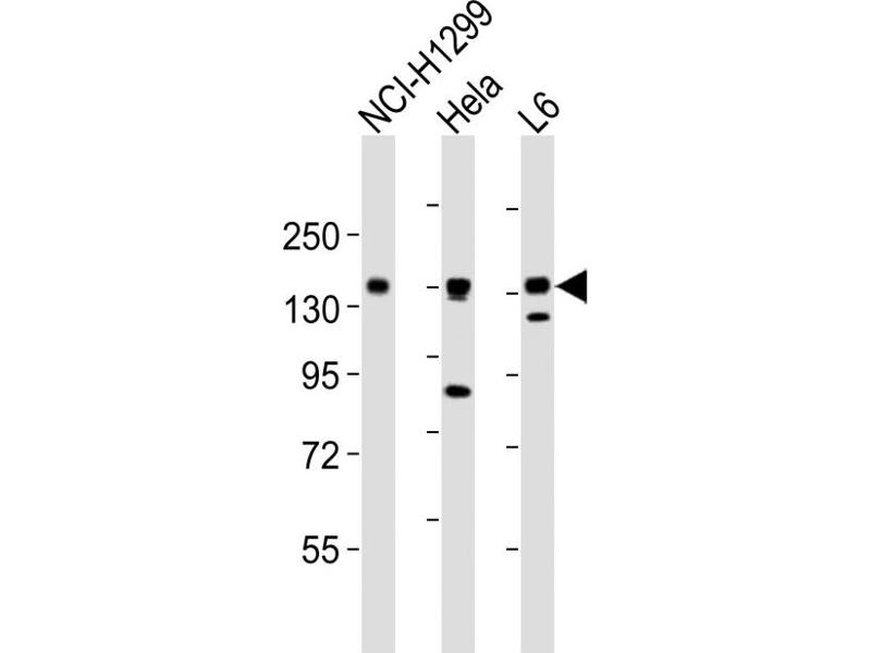 This AXL antibody is generated from a rabbit immunized with a KLH conjugated synthetic peptide between 838-872 amino acids from the C-terminal region of human AXL.