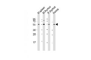 This Mouse Lck antibody is generated from a rabbit immunized with a KLH conjugated synthetic peptide between 224-257 amino acids from the Central region of Mouse Lck.