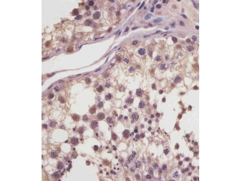 This MGEA5 antibody is generated from a rabbit immunized with a KLH conjugated synthetic peptide between 236-269 amino acids from the human region of human MGEA5.