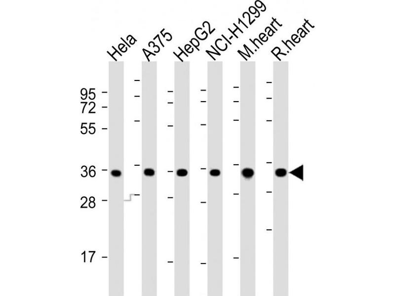 This PDHB antibody is generated from a rabbit immunized with a KLH conjugated synthetic peptide between 324-356 amino acids from the C-terminal region of human PDHB.