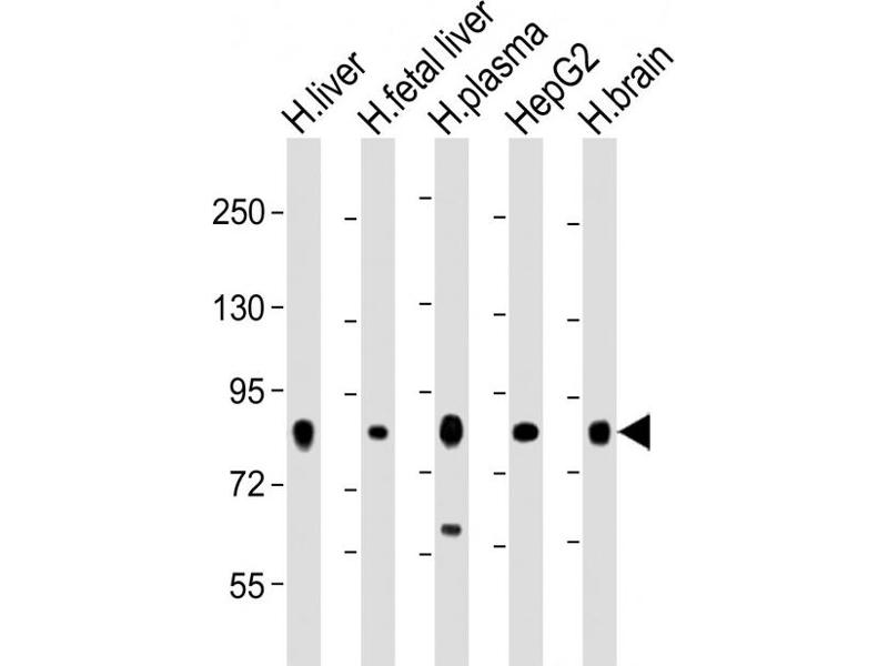 This Transferrin antibody is generated from a rabbit immunized with a KLH conjugated synthetic peptide between 432-466 amino acids from human Transferrin.