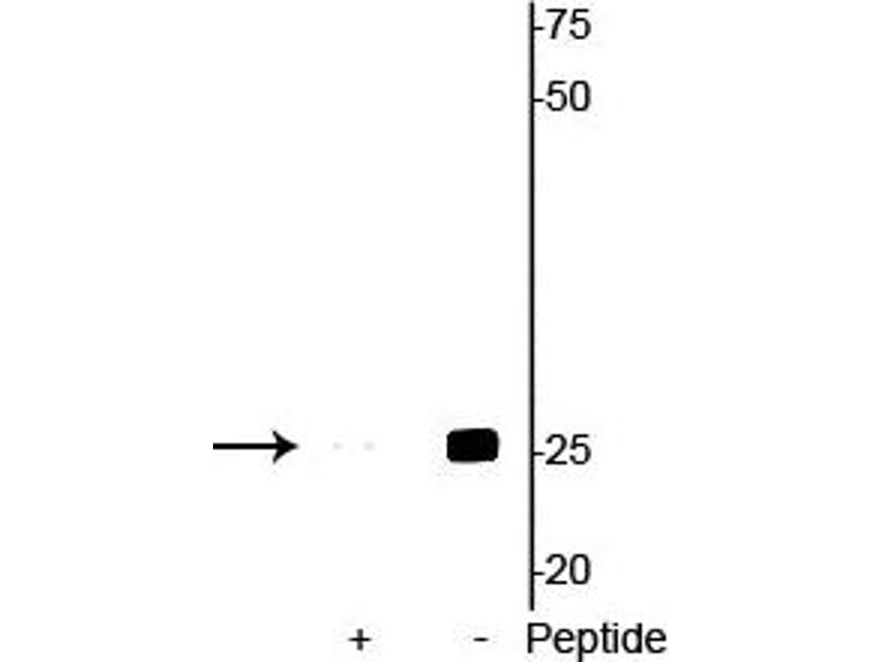 Specific for endogenous levels of the ~25 kDa cardiac troponin I protein phosphorylated at Ser23/24. Immunolabeling is blocked by preadsorption with the phosphopeptide used as antigen, but not by the corresponding non-phosphopeptide.